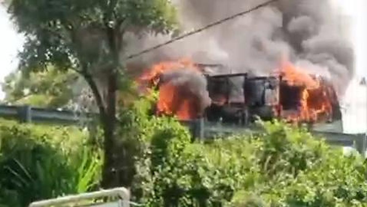 Pihak kepolisian dan petugas tol masih melakukan penyelidikan. Dugaan sementara, korsleting listrik dari sistem mesin menjadi pemicu kebakaran.